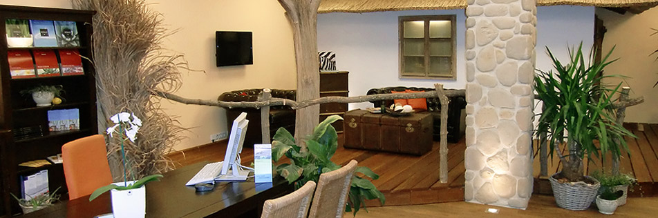 Schon der Besuch unseres Reisebüros ist ein Erlebnis. Wir haben uns für eine besondere Art der Einrichtung entschieden. Der erste Blick in die hellen, großen Räume ist sehr beeindruckend. Leise Hintergrundmusik, geschmackvolles, südländisches Ambiente, hier und da einige afrikanische Dekorationen, mediterrane Impressionen auf Leinwand sowie Möbel im Kolonialstil.
